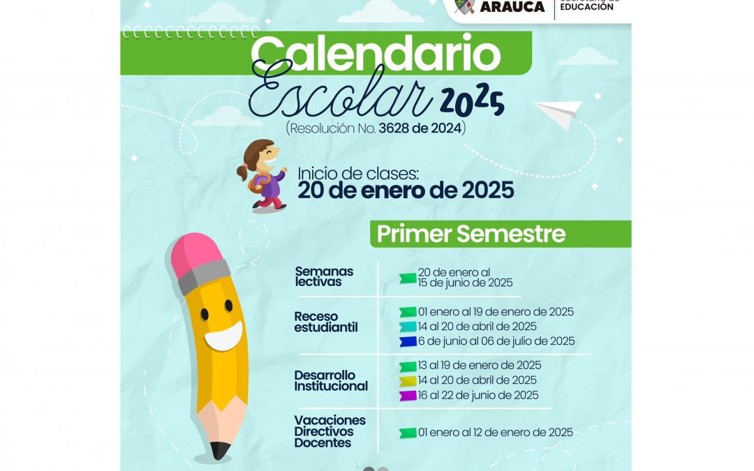 Arauca, 07 de noviembre de 2024. La Gobernación de Arauca a través de la Secretaría de Educación Departamental ha establecido mediante Resolución No. 3628 de 2024, el calendario escolar y académico general del 2025, para los Establecimientos Educativos Oficiales y No Oficiales de los municipios no certificados del departamento de Arauca, que prestan el servicio público educativo en los niveles de Preescolar, Básica y Media.